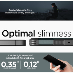 Lekkie i ultra cienkie (1.55mm) etui ochronne marki Spigen. Wykonane z TPU oraz wytrzymałego, lekko elastycznego poliwęglanu, który zapewnia niezawodną ochronę Twojego urządzenia oraz poprawia jego chwyt w dłoni. Produkt jest idealnie dopasowany, w pełni funkcjonalny, nie ogranicza dostępu do portów zewnętrznych i skutecznie chroni telefon przed zarysowaniami czy niewielkimi upadkami. Thin Fit kusi nowoczesnym, minimalistycznym wzornictwem! Wszystkie produkty Spigen są testowane pod kątem odporności na ścieranie oraz precyzyjnego dopasowania, w celu dostarczenia wysokiej jakości etui. CECHY PRODUKTU: ZESTAW ZAWIERA: