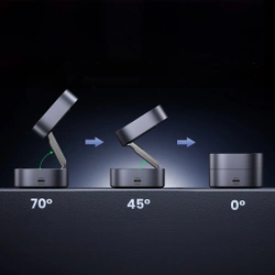 Składana konstrukcjaKompaktowa i składana konstrukcja ładowarki sprawia, że jest łatwa do przenoszenia i przechowywania. Z wymiarami 60 x 60 x 49 mm i wagą zaledwie 205 g, zmieści się w każdej torbie, plecaku czy bagażu. Wbudowana przeciwwaga oraz silikonowe podkładki zapewniają stabilność urządzenia, co czyni ją idealną do użytku w domu, biurze oraz w podróży.