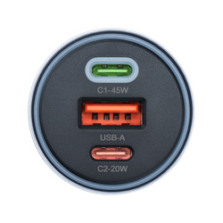 Ładowarka samochodowa o dużej mocy (65 W), z trzema portami (2 x USB-C i 1 x USB-A) i funkcją szybkiego ładowania Super Fast Charging 2.0. Dzięki niej naładujesz urządzenie do 50% nawet w 30 minut*.