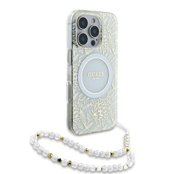 | Podaj numer ID produktu:  | Etui Guess iPhone 16 Pro 6.3" biały/white hardcase IML Flowers Allover Electro With Pearl Strap MagSafeID: 162640 producent: Guess