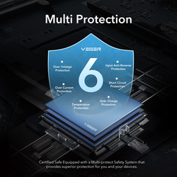 Power bank Veger L10S o pojemności 10 000 mAH to gwarancja szybkiego ładowania w dowolnym miejscu i czasie. Wygodne ładowanie Zastosowanie cenionej na rynku baterii litowo-polimerowej gwarantuje wolniejsze rozładowywanie się power banka. Pojemność na poziomie 10 000 mAh pozwoli Ci nawet dwukrotnie uzupełnić energię w telefonie (w zależności od baterii smartfona), tak że przyda się w trasie, kiedy nie ma stałego dostępu do gniazdek elektrycznych. Kilka urządzeń jednocześnienie 4 porty, w tym micro USB, USB-C i dwa USB-A, obsługują technologie szybkiego ładowania Power Delivery (20W) i Quick Charge 3.0, a do tego umożliwią naładowanie w tym samym czasie dwóch urządzeń, np. smartfona, tablet, podręczną konsolę czy słuchawki typu TWS. Dzięki USB-C bez problemu podłączysz najnowszy sprzęt na rynku. Zabieraj go wszędzie, gdzie potrzebujesz Minimalistyczna, smukła konstrukcja oraz niewielka waga sprawiają, że power bank nadaje się do użycia w trakcie podróży, a wyświetlacz LED poinformuje Cię o poziomie naładowania urządzenia.