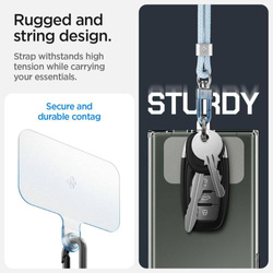 Podobne produkty Wytrzymały i wszechstronny zestaw dwóch smyczy marki Spigen zaprojektowanych dla nowoczesnej użyteczności. Crossbody Strap (o maksymalnej długości 790mm) i Wrist Strap (o maksymalnej długości 220mm) umożliwiają noszenie telefonu lub innych urządzeń na ramieniu czy nadgarstku na różne sposoby. Solidny karabińczyk oraz dołączona specjalna, plastikowa podkładka ConTag dodatkowo zwiększają zakres możliwości. Smycze są regulowane i wykonane z plecionego dakronu, co zapewnia ich trwałość i wytrzymałość. Dodatkowo, smyczki mogą być używane do przymocowania innych akcesoriów, takich jak klucze, słuchawki czy kamera. Warto jednak pamiętać, że ConTag może być używany jedynie w przypadku, gdy etui stosowane na urządzeniu zakrywa całą obudowę telefonu, włącznie z jego dolną częścią. *Zestaw nie jest kompatybilny z urządzeniami z serii Galaxy Z Fold i Z Flip. CECHY PRODUKTU: ZESTAW ZAWIERA:
