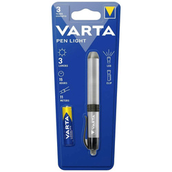 Latarka Varta Pen Light to niewielkie, ale funkcjonalne narzędzie oświetleniowe, idealne do precyzyjnych zadań w warsztacie, biurze czy codziennym użytkowaniu. Dzięki mocy 3 lumenów i zasięgowi światła do 11 metrów, zapewnia wystarczające oświetlenie do bliskiej pracy. Kompaktowa konstrukcja sprawia, że latarka z łatwością mieści się w kieszeni, torbie lub schowku samochodowym. Solidna obudowa wykonana z aluminium, plastiku i trwałych materiałów TPR, ABS oraz PC, gwarantuje wysoką odporność na codzienne użytkowanie. Dzięki czasowi pracy do 15 godzin na jednym zestawie baterii, latarka zapewnia niezawodne oświetlenie w każdej sytuacji. Najważniejsze cechy: Specyfikacja techniczna: