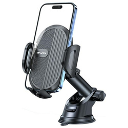 Uchwyt samochodowy na telefon, mechaniczne blokowany. Ramiona z tłumieniem dokręcane zębatką. Regulowane ramię łączące. Zastosowany mechanizm pozwalający na obrót poziomy i pionowy. Uchwyt obsługuje urządzenia o przekątnej od 4,7 do 7,2 cala. Mocowanie za pomocą przyssawki próżniowej.