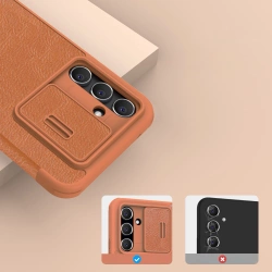 Sprawdź też: KARTA_PRODUKTOWA_NILLKIN_QIN_PRO_LEATHER Nillkin Qin Pro Leather Case to etui, które łączy w sobie klasyczną elegancję z funkcjonalnością. Wykonane z doskonałej skóry o naturalnej teksturze, zachwyca jakością i wyglądem, który nadaje urządzeniu wyrafinowany charakter. Dzięki klapce, etui nie tylko chroni ekran przed zadrapaniami i zabrudzeniami, ale oferuje również kieszonki np. na karty płatnicze. Przesuwana osłona obiektywu chroni wyspę aparatów oraz prywatność użytkownika. Dodatkowo, etui ma podwyższone krawędzie o 0,2 mm, co chroni telefon przed uszkodzeniami mechanicznymi i pozwala na bezpieczne odkładanie go na różne powierzchnie. Precyzyjne wycięcia na porty ładowania, głośniki i przyciski gwarantują wygodne i pełne użytkowanie urządzenia, bez konieczności zdejmowania etui. Produkt cechuje się elegancją i wygodą w codziennym użytkowaniu. Nillkin Qin Leather Pro to doskonałe połączenie stylu, ochrony i szerokiej funkcjonalności, które na pewno przyciągnie uwagę Twoich klientów.