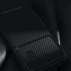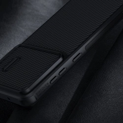 Etui Samsung Galaxy S23 z serii Nillkin Synthetic Fiber S Case etui z osłoną na aparat w kolorze czarnym Etui z serii Synthetic Fiber S Case marki Nillkin to bardzo wytrzymały pokrowiec, który jest w stanie uchronić twój Samsung Galaxy S23 od poważnego uszkodzenia po jego upadku na podłogę. Kupując nowy telefon warto jest od razu zaopatrzyć się w porządne etui, tym bardziej kiedy zdecydowałeś się na urządzenie z najwyższej półki cenowej. Wystarczy jeden nieostrożny ruch, żeby telefon spadł na ziemię. Smartfon, na którym było założone etui, a tym bardziej Nillkin Synthetic Fiber S Case ma dużo większe szanse na wyjście bez szwanku z takiego wypadku. Pokrowiec dodatkowo posiada przesuwaną osłonę na tylny aparat. Dzięki zaślepce szkło kamery jest chronione przed porysowaniem. Jest do też dodatkowy plus dla osób ceniących prywatność i bezpieczeństwo swoich danych. Zakryta kamera uniemożliwia dostęp do nagrywania obrazu w przypadku kiedy ktoś uzyska zdalny dostęp do telefonu i włączy podgląd z głównej kamery. Specyfikacja: