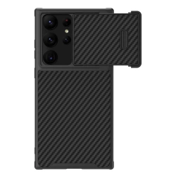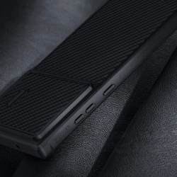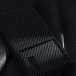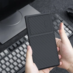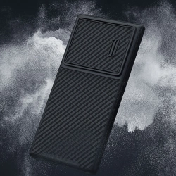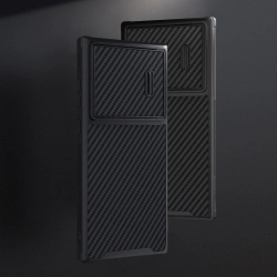 Etui Samsung Galaxy S23 Ultra z serii Nillkin Synthetic Fiber S Case etui z osłoną na aparat w kolorze czarnym Etui z serii Synthetic Fiber S Case marki Nillkin to bardzo wytrzymały pokrowiec, który jest w stanie uchronić twój Samsung Galaxy S23 Ultra od poważnego uszkodzenia po jego upadku na podłogę. Kupując nowy telefon warto jest od razu zaopatrzyć się w porządne etui, tym bardziej kiedy zdecydowałeś się na urządzenie z najwyższej półki cenowej. Wystarczy jeden nieostrożny ruch, żeby telefon spadł na ziemię. Smartfon, na którym było założone etui, a tym bardziej Nillkin Synthetic Fiber S Case ma dużo większe szanse na wyjście bez szwanku z takiego wypadku. Pokrowiec dodatkowo posiada przesuwaną osłonę na tylny aparat. Dzięki zaślepce szkło kamery jest chronione przed porysowaniem. Jest do też dodatkowy plus dla osób ceniących prywatność i bezpieczeństwo swoich danych. Zakryta kamera uniemożliwia dostęp do nagrywania obrazu w przypadku kiedy ktoś uzyska zdalny dostęp do telefonu i włączy podgląd z głównej kamery. Specyfikacja: