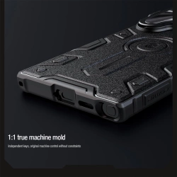 Etui Nillkin CamShield Armor Prop Case na Samsung Galaxy S24 Ultra - czarneEtui Nillkin CamShield Armor Prop Case nie tylko ochroni Twój telefon przed zarysowaniami, ale również zwiększy Twoją prywatność dzięki specjalnej osłonie na aparat. Idealne dla osób, które cenią sobie funkcjonalność i bezpieczeństwo. Etui umożliwia wygodne ustawienie telefonu bez użycia rąk podczas oglądania filmów czy przeglądania internetu. Jest łatwe w montażu i zapewnia solidną ochronę dzięki połączeniu twardego tworzywa PC z miękką ramką TPU. Chropowata powierzchnia zapobiega wyślizgnięciu się telefonu z dłoni, a precyzyjne wycięcia umożliwiają łatwy dostęp do wszystkich funkcji telefonu. Najważniejsze zalety etui Nillkin CamShield Armor Prop Case: