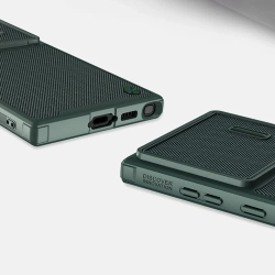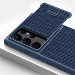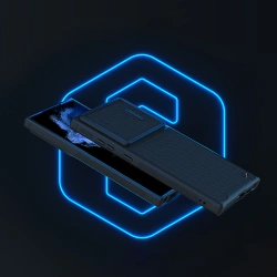 Pancerne etui Samsung Galaxy S22 Ultra z serii Nillkin Textured S Case z osłoną na aparat Etui Nillkin Textured S Case powstało z wysokiej jakości materiałów. Nietypowy tylny panel pokrowca ma przyjemną w dotyku powłokę z włókna nylonowego. Nie tylko zapewnia ona ciekawe wykończenie i ciekawy design, lecz przy tym jest wygodna i zapobiega wyślizgnięciu urządzenia z dłoni. Pokrowiec jest dopasowany do Samsung Galaxy S22 Ultra, doskonale chroni go przed zniszczeniami wskutek upadków lub zarysowań (na przykład przez noszone w kieszeni klucze). Pokrowiec posiada przesuwaną osłonę na tylny aparat. Dzięki niej szkło kamery jest chronione przed porysowaniem. Jest do też dodatkowy plus dla osób ceniących prywatność i bezpieczeństwo swoich danych. Zakryta kamera uniemożliwia dostęp do nagrywania obrazu w przypadku kiedy ktoś uzyska zdalny dostęp do telefonu i włączy podgląd z głównej kamery. Podniesione krawędzie dookoła ekranu zabezpieczają go od zarysowania kiedy ten leży na płaskiej powierzchni. Specyfikacja: