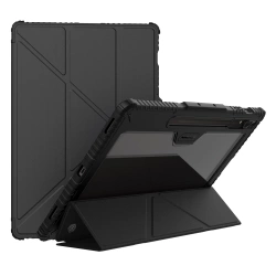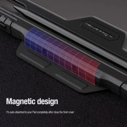 Aż 5 sposobów na ustawienie klapkiNiezależnie od tego, czy oglądasz filmy, czytasz przepisy kulinarne, czy wykonujesz zdjęcia, etui Nillkin Bumper Leather Case Pro dostosowuje się do Twoich potrzeb. Pięć możliwych ustawień klapki sprawia, że każda czynność stanie się bardziej komfortowa i przyjemna. Wytrzymałe i eleganckie etuiPodwójna budowa z panelu PC i ramki z TPU w połączeniu z eleganckim wykończeniem ze skóry PU nie tylko zwiększa ochronę Twojego tabletu, ale również dodaje mu klasy i stylu. Funkcjonalność na wysokim poziomieDzięki osłonce na kamerę i miejscu na rysik etui Nillkin Bumper Leather Case Pro dba o każdy detal. Twoje akcesoria będą zawsze pod ręką - dobrze zabezpieczone! Ochrona na każdą okazjęSpecjalne wzmocnienia na krawędziach i zastosowanie antypoślizgowej skóry PU gwarantują ochronę przed skutkami upadków i zarysowaniami. Bez względu na to, gdzie jesteś, etui Nillkin Bumper Leather Case Pro ochroni Twój tablet w każdych warunkach. Inteligentne rozwiązania dla Twojego komfortuWbudowana funkcja auto-sleep to nie tylko wygoda, ale i oszczędność energii. Odsłonięcie klapki automatycznie obudzi tablet, pozwalając na szybki dostęp do wszystkich funkcji bez zbędnego oczekiwania.