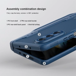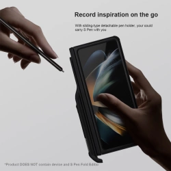 Etui Nillkin Super Frosted Shield Fold na Samsung Galaxy Z Fold 5 - czarneEtui Nillkin Super Frosted Shield Fold to idealny wybór dla użytkowników Samsung Galaxy Z Fold 5, którzy cenią sobie zarówno styl, jak i ochronę. Zapewnia pełną swobodę korzystania z ekranu dzięki możliwości swobodnego składania na płasko. Dzięki połączeniu materiałów PC i TPU oraz dodatkowemu wzmocnieniu w postaci poduszek powietrznych etui gwarantuje kompleksową ochronę. Ukryty stojak umożliwia wygodne korzystanie z telefonu zarówno w pracy, jak i podczas rozrywki. Zintegrowany, zdejmowany uchwyt na rysik S Pen pozwala mieć go zawsze przy sobie. Najważniejsze zalety etui Nillkin Super Frosted Shield Fold: