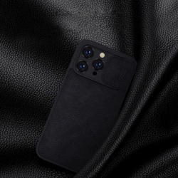 Etui skórzane Nillkin Qin Pro Leather Case do iPhone 14 Pro (czarne)Zadbaj o bezpieczeństwo swojego iPhone 14 Pro i wyposaż się w solidne etui skórzane, które ochroni je przed zarysowaniem i uszkodzeniami mechanicznymi. Nillkin Qin Pro Leather Case doskonale pasuje do kształtu iPhone’a 14 Pro i umożliwia wygodne korzystanie z urządzenia, atutem jest też przesuwana nakładka na obiektyw, która zapobiega porysowaniu i zabrudzeniu, a dodatkowo chroni Twoją prywatność.