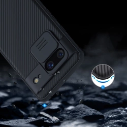Etui Nillkin CamShield Pro Case do Google Pixel 8 (czarne)Zadbaj o ochronę Twojego smartfona. Etui Nillkin zabezpiecza urządzenie przed zarysowaniem i pozwala chronić prywatność dzięki dodatkowej osłonie na aparat. Ponadto chronione są także obiektywy aparatów. Etui wykonane zostało z przyjaznych dla środowiska materiałów, które są odporne na zużycie. Tylny panel posiada miłą w dotyku teksturę