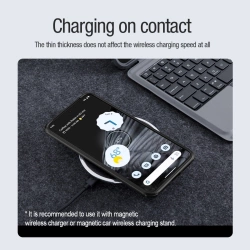 Etui Nillkin Super Frosted Shield Pro Magnetic Case z MagSafe na Google Pixel 8 - czarneWytrzymałe etui Nillkin Super Frosted Shield Pro jest w stanie uchronić Twój tablet od poważnego uszkodzenia po jego upadku na podłogę. Składa się z elastycznej ramki z TPU i sztywnych plecków z PC. Ramka ułatwia zakładanie etui na telefon, a plecki usztywniają całą konstrukcję. Narożniki są ukształtowane w taki sposób, aby absorbowały energię uderzenia. Podwyższone ranty dookoła tylnego aparatu i ekranu oddzielają te elementy od podłoża, na którym mogłyby zostać porysowane. Etui Nillkin Super Frosted Shield Pro pozwala też na bezprzewodowe ładowanie za pomocą ładowarki MagSafe. Ma wbudowane silne, neodymowe magnesy, które nie pozwolą zsunąć się telefonowi z ładowarki. Jest wygodne w użyciu i bardzo wytrzymałe. Najważniejsze zalety etui Nillkin Super Frosted Shield Pro Magnetic Case: