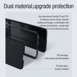 Skuteczna ochrona telefonu w każdej sytuacjiNiezależnie od tego, jak intensywnie użytkujesz swój telefon, etui Nillkin Super Frosted Shield Pro zapewni mu pełną ochronę przed uszkodzeniem w każdej sytuacji. Wykorzystanie dwóch tworzyw (elastycznego TPU oraz solidnego PC) sprawia, że każda powierzchnia Twojego urządzenia ma zapewniony odpowiedni poziom ochrony. Narożniki działają jak poduszka powietrzna: amortyzują upadki nawet ze sporej wysokości. Etui Nillkin Super Frosted Shield Pro zabezpiecza obiektywy przed zarysowaniemObiektywy aparatu często ulegają zarysowaniom, obniżając jakość wykonywanych zdjęć. W etui Nillkin Super Frosted Shield Pro znajdziesz wzmacniane krawędzie wokół tych elementów. Skutecznie chronią obiektywy przed zarysowaniem, separując je od powierzchni, na której kładziesz telefon. Z wygodnym, antypoślizgowym materiałemZastosowania antypoślizgowego pokrycia sprawia, że telefon nie wypadnie Ci z ręki ani nie zsunie się z biurka. Dodatkowo ten materiał zapewnia wysoki komfort użytkowania urządzenia i jest przyjazny dla skóry. Precyzyjnie wycięte otwory na wtyczkiDla pełnego komfortu obsługiwania telefonu, a także dla zapewnienia skutecznej ochrony najbardziej narażonych na uszkodzenie miejsc, wszystkie otwory wokół wtyczek zostały bardzo precyzyjnie wycięte. Perfekcyjnie wycięciaEtui posiada dokładnie wycięte otwory, w miejscach aparatu, głośników i wtyczki do ładowania. Wszystko jest precyzyjnie dopasowane do konkretnego modelu telefonu.