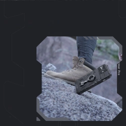 Pancerne etui iPhone 14 Pro z serii Nillkin CamShield Armor Pro z osłona na aparat w kolorze niebieskim Oto jedno z najsolidniejszych etui na smartfon. Model od Nillkin z serii CamShield Armor Pro wyróżnia się wyglądem inspirowanym militariami, skusi miłośników survivalu i sztuki przetrwania. Pokrowiec jest dopasowany do iPhone 14 Pro, doskonale chroni telefon przed zniszczeniami wskutek upadków lub zarysowań (na przykład przez noszone w kieszeni klucze). Podniesione krawędzie dookoła ekranu i tylnego aparatu zabezpieczają telefon od zarysowania tych elementów kiedy ten leży na płaskiej powierzchni. Posiada responsywne przyciski i wycięcia na porty. Idealny dla osób, które cenią sobie styl, jakość i chcą zadbać o swoje urządzenie. Posiada przesuwaną osłonę na tylny aparat. Dzięki niej szkło kamery jest chronione przed porysowaniem. Jest do też dodatkowy plus dla osób ceniących prywatność i bezpieczeństwo swoich danych. Zakryta kamera uniemożliwia dostęp do nagrywania obrazu w przypadku kiedy ktoś uzyska zdalny dostęp do telefonu i włączy podgląd z głównej kamery. Specyfikacja: