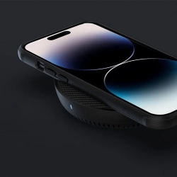 Nillkin Super Frosted Shield Pro z MagSafe magnetyczne wzmocnione etui pokrowiec na telefon Etui z serii Super Frosted Shield Pro marki Nillkin to bardzo wytrzymały pokrowiec, który jest w stanie uchronić twój telefon od poważnego uszkodzenia po jego upadku na podłogę. Kupując nowy telefon warto jest od razu zaopatrzyć się w porządne etui, tym bardziej kiedy zdecydowałeś się na urządzenie z najwyższej półki cenowej. Wystarczy jeden nieostrożny ruch, żeby telefon spadł na ziemię. Smartfon, na którym było założone etui, a tym bardziej Nillkin Super Frosted Shield Pro ma dużo większe szanse na wyjście bez szwanku z takiego wypadku. Etui pozwala na bezprzewodowe ładowanie za pomocą ładowarki MagSafe – ma wbudowane silne, neodymowe magnesy, które nie pozwolą zsunąć się telefonowi z ładowarki. Jest wygodne w użyciu i bardzo wytrzymałe. Pokrowiec składa się z elastycznej ramki z TPU i sztywnych plecków z PC. Ramka ułatwia zakładanie etui na telefon, a plecki usztywniają całą konstrukcję. Narożniki są ukształtowane w taki sposób, żeby działały jak zderzaki w samochodzie i absorbowały energię uderzenia. Podwyższone ranty dookoła tylnego aparatu i ekranu oddzielają te elementy od podłoża, na którym mogły by zostać porysowane. Najważniejsze cechy