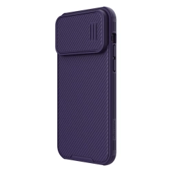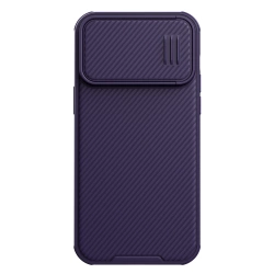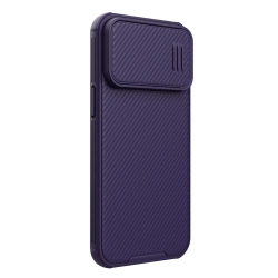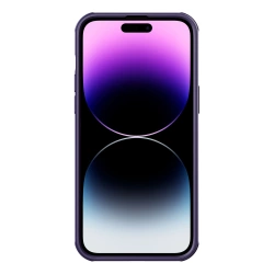Pancerne etui iPhone 14 Pro Max z serii Nillkin CamShield S Case z osłoną na aparat w kolorze fioletowym Smukłe i eleganckie etui Nillkin CamShield S Case, które zabezpiecza urządzenie przed uszkodzeniami, a dodatkowo posiada przesuwaną osłonę na tylny aparat. Pokrowiec jest dopasowany do iPhone 14 Pro Max, doskonale chroni telefon przed zniszczeniami wskutek upadków lub zarysowań (na przykład przez noszone w kieszeni klucze). Pokrowiec posiada przesuwaną osłonę na tylny aparat. Dzięki niej szkło kamery jest chronione przed porysowaniem. Jest do też dodatkowy plus dla osób ceniących prywatność i bezpieczeństwo swoich danych. Zakryta kamera uniemożliwia dostęp do nagrywania obrazu w przypadku kiedy ktoś uzyska zdalny dostęp do telefonu i włączy podgląd z głównej kamery. Podniesione krawędzie dookoła ekranu zabezpieczają go od zarysowania kiedy ten leży na płaskiej powierzchni. Specyfikacja: