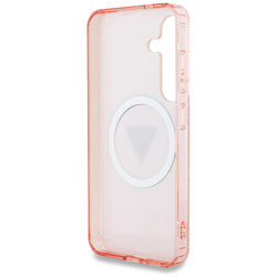Podobne produkty   Etui Guess 4G Glitter Triangle Buttons MagSafe4G Glitter Triangle Buttons MagSafe to ekskluzywna linia etui ochronnych, która łączy w sobie zarówno wyjątkową funkcjonalność, jak i stylowy, unikalny design. Kolekcja ta, została zaprojektowana z myślą o osobach ceniących sobie nie tylko bezpieczeństwo swojego telefonu, ale także elegancki wygląd.    Niepowtarzalny wygląd i wyjątkowa jakośćEkskluzywne etui ochronne od renomowanej marki Guess to połączenie elegancji i stylu na najwyższym poziomie. Etui wykonano z wysokiej jakości poliwęglanu oraz poliuretanu. Powierzchnię zdobi charakterystyczny wzór 4G oraz brokatowy pierścień MagSafe. Solidna konstrukcja i perfekcyjne dopasowanieDzięki starannie dopasowanym wymiarom, etui skutecznie amortyzuje ewentualne upadki, zachowując jednocześnie pełen dostęp do portów oraz przycisków.     Naładuj swój telefon bezprzewodowo!Etui zostało wyposażone w magnetyczny pierścień kompatybilny z bezprzewodową ładowarką MagSafe, zapewniając szybkie i łatwe ładowanie. Wbudowane w pokrowce magnesy są idealnie dopasowane do telefonu użytkownika i zapewniają mocne przyleganie urządzenia do ładowarki MagSafe. Etui zostało wyprodukowane na licencji marki Guess.