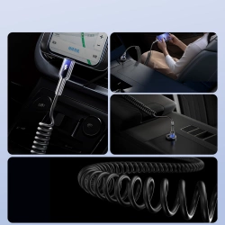 Szybkie ładowanie dla urządzeń AppleTen kabel zapewnia ładowanie z prądem do 3A, co umożliwia szybkie i bezpieczne zasilanie Twojego iPhone'a, iPada czy iPoda. Trwałość na poziomie premiumDzięki wytrzymałym materiałom ABS i TPU oraz spiralnej konstrukcji kabel jest odporny na zginanie i uszkodzenia mechaniczne. Bezproblemowa transmisja danychZ prędkością transmisji danych do 480Mbps możesz szybko i bezpiecznie przesyłać pliki pomiędzy urządzeniami. Bezpieczeństwo i stabilnośćWyposażony w magnetyczny pierścień, kabel chroni przed zakłóceniami elektromagnetycznymi, co jest szczególnie przydatne przy korzystaniu z systemów CarPlay. Wbudowany inteligentny chipInteligentny chip automatycznie reguluje napięcie i prąd, co minimalizuje ryzyko przegrzewania się kabla podczas ładowania.
