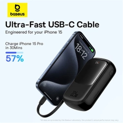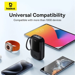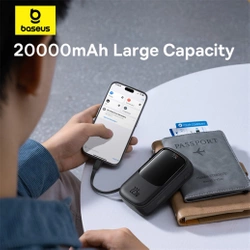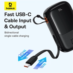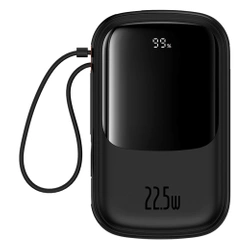 Powerbank Baseus QPow Pro+ o pojemności 20000 mAh, mocy do 22.5W z wyświetlaczem i wbudowanym kablem USB-C - czarnyTen powerbank dotrzyma Ci kroku - niezależnie od tego, gdzie jesteś. Dzięki pojemności 20000 mAh, wyświetlaczowi pokazującemu poziom naładowania, wbudowanemu kablowi USB-C i dwóm dodatkowym portom powerbank Baseus QPow Pro+ jest idealnym rozwiązaniem dla każdego, kto ceni sobie niezależność i mobilność. Jego kompaktowe rozmiary (tylko 12 cm długości) sprawiają, że zmieści się w każdej torbie czy plecaku. Ma również wbudowane odpowiednie zabezpieczenia. Najważniejsze zalety powerbanka Baseus QPow Pro+: