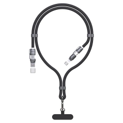 Kabel 4w1 / Smycz Dudao L20MAX USB-A / USB-C / Lightning PD QC 65W 1.5m - czarnyOto nowoczesny i wszechstronny kabel 4w1 Dudao L20MAX, który spełni oczekiwania nawet najbardziej wymagających użytkowników. Dzięki obsłudze mocy do 65W oraz wsparciu dla technologii Power Delivery i Quick Charge, zapewnia błyskawiczne ładowanie Twoich urządzeń. Wykonanie z wysokiej jakości stopu aluminium oraz plecionego nylonu gwarantuje trwałość i odporność na uszkodzenia. Możliwość konfiguracji różnych kombinacji portów (USB-A - USB-C, USB-C - USB-C, USB-C - Lightning, USB-A - Lightning) sprawia, że jest to kabel idealny dla każdego. Dodatkowo jego innowacyjna konstrukcja pozwala na wykorzystanie go jako smyczy do telefonu, zapewniając wygodę i funkcjonalność w jednym. Specyfikacja: