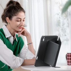 ESR Flip Hybrid Case to eleganckie i funkcjonalne akcesorium zostało zaprojektowane z myślą o użytkownikach, którzy cenią sobie nie tylko estetykę, ale też codzienną wygodę i ochronę urządzenia na najwyższym poziomie. Etui wyróżnia się lekką, smukłą konstrukcją, która nie dodaje objętości, jednocześnie zapewniając solidną ochronę tyłu i boków iPada. Klapka przylega pewnie do ekranu, zabezpieczając go przed zarysowaniami i zabrudzeniami, a funkcja automatycznego usypiania i wybudzania wydłuża czas pracy na baterii i sprawia, że korzystanie z iPada staje się jeszcze bardziej intuicyjne. Jedną z największych zalet ESR Flip Case jest jego wszechstronność – etui łatwo przekształcisz w podstawkę z regulowanym kątem nachylenia, idealną do pisania, oglądania filmów, wideokonferencji czy rysowania. Wbudowany uchwyt na Apple Pencil nie tylko umożliwia jego przechowywanie, ale również wspiera ładowanie magnetyczne, dzięki czemu Twój rysik jest zawsze gotowy do działania. To wszystko zamknięte w nowoczesnej, matowej formie, która świetnie komponuje się z estetyką iPada i nadaje mu profesjonalny wygląd. ESR Flip Case to idealny wybór dla osób aktywnych, kreatywnych, pracujących i uczących się w ruchu – dla każdego, kto chce połączyć styl, komfort i niezawodną ochronę w jednym etui. Jak sprawdzić czy dane akcesorium pasuje do Twojego iPada? CECHY PRODUKTU: W ZESTAWIE: