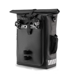 Sakwa rowerowa Rockbros z funkcją plecaka, wodoodporna, z zaczepem na kask 18l - czarnaOdkryj nowy wymiar wygody podczas jazdy na rowerze dzięki sakwie rowerowej Rockbros z funkcją plecaka i zaczepem na kask. To innowacyjne rozwiązanie dla miłośników długodystansowych tras i codziennych dojazdów, które łączy przestronność, wodoodporność i wszechstronność użytkowania. Dzięki pojemności 13,5–18 litrów z łatwością pomieścisz cały niezbędny ekwipunek, a system rolowanego zamknięcia umożliwia dopasowanie objętości do aktualnych potrzeb. Wbudowane szelki pozwalają szybko przekształcić sakwę w praktyczny plecak, co ułatwia transport poza rowerem. Konstrukcja wykonana w technologii bezszwowego zgrzewania oraz wewnętrzne klejenie gwarantują całkowitą ochronę przed deszczem. Dodatkowe funkcje, takie jak zaczep na tylne światło, odblaskowe logo, klamra z gwizdkiem czy uchwyt na kask sprawiają, że jest to doskonały wybór dla wymagających użytkowników. Specyfikacja: