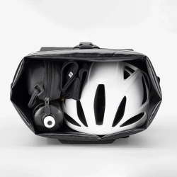 System bezszwowego zgrzewania i wewnętrznego klejenia chroni zawartość przed deszczemCałkowicie wodoodporna konstrukcja bez klasycznych szwów zapobiega przesiąkaniu wody – nawet podczas intensywnego deszczu zawartość sakwy pozostaje sucha. Sakwa z możliwością przekształcenia w plecak zapewnia wygodę poza roweremPo zdjęciu z bagażnika sakwę można szybko zamienić w plecak dzięki ukrytym szelkom – idealne rozwiązanie dla miejskich rowerzystów i turystów rowerowych. Regulowana pojemność do 18 litrów dostosowuje się do Twoich potrzebSystem rolowanego zamknięcia umożliwia elastyczne zwiększanie objętości sakwy – od codziennych zakupów po długodystansowe wyjazdy z pełnym ekwipunkiem. System szybkiego montażu pasuje do większości bagażników rowerowychDzięki regulowanym zaczepom montaż sakwy na bagażniku zajmuje zaledwie chwilę – pasuje do większości modeli bez dodatkowych narzędzi. Odblaskowe elementy, zaczep na światło i uchwyt na kask zwiększają bezpieczeństwoSakwa posiada liczne elementy poprawiające widoczność, a specjalny boczny zaczep pozwala na wygodne przewożenie kasku – więcej miejsca, większe bezpieczeństwo.