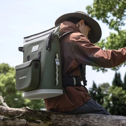 Plecak termiczny Rockbros z izolacją 18l ergonomiczny - zielonyPlecak termiczny Rockbros z izolacją to idealne rozwiązanie dla miłośników aktywności na świeżym powietrzu, którzy cenią funkcjonalność, wygodę i stylowy wygląd. Dzięki pojemności 18 litrów (w tym 2,5 l z dodatkowej zawieszanej torby), zapewnia wystarczająco dużo miejsca na napoje, jedzenie i inne niezbędne akcesoria. Wykonany z wytrzymałego materiału 840DTPU, plecak łączy nowoczesny design z wysoką odpornością na zużycie. Skuteczna izolacja fizyczna umożliwia utrzymanie chłodnej temperatury nawet przez 68 godzin, przy zastosowaniu kostek lodu lub wkładów mrożących. Ergonomiczna konstrukcja zapewnia wygodne noszenie, a kompaktowy rozmiar pozwala łatwo zmieścić go w aucie czy przypiąć do roweru. To nie tylko plecak – to mobilna lodówka outdoorowa, która doskonale sprawdzi się podczas wypraw rowerowych, pikników i rodzinnych biwaków! Specyfikacja: