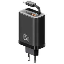 Ładowarka sieciowa USAMS Xiang Series CC299 65W 1xUSB-C 1xUSB-A + kabel USB-CUSAMS to renomowana marka specjalizująca się w projektowaniu i produkcji akcesoriów elektronicznych premium. Znana z innowacyjnego podejścia i stylowego designu, oferuje szeroką gamę produktów, w tym akcesoria do telefonów komórkowych, ładowarki i inne urządzenia elektroniczne. Skupiając się na jakości, trwałości i funkcjonalności, łączy nowoczesną technologię z wyjątkowym rzemiosłem.   Uniwersalna ładowarka do podróżyŁadowarka sieciowa USAMS Xiang Series CC299 to doskonałe rozwiązanie dla osób szukających kompaktowego i wydajnego źródła energii. Zintegrowany kabel USB-C o długości do 95 cm oraz dodatkowe dwa porty sprawiają, że urządzenie może zasilać do trzech sprzętów jednocześnie. Jej lekka i smukła konstrukcja ułatwia transport, co czyni ją idealnym towarzyszem podróży. Dzięki zastosowaniu nowoczesnych technologii, ładowarka oferuje szybkie ładowanie przy zachowaniu bezpieczeństwa. Wysoka moc 65W umożliwia zasilanie nie tylko smartfonów, ale również tabletów czy laptopów. To praktyczne połączenie funkcjonalności i eleganckiego designu w jednym kompaktowym urządzeniu. Trzy porty dla większej wygodyZintegrowany system trzech portów pozwala ładować aż trzy urządzenia jednocześnie, bez spadku efektywności. Port USB-C, klasyczny port USB-A oraz wbudowany kabel USB-C oferują różne konfiguracje zasilania, dopasowane do potrzeb użytkownika. Przykładowo, port USB-C i kabel mogą razem dostarczyć aż 65W, co pozwala szybko naładować większe sprzęty. Połączenie portów USB-C i USB-A umożliwia ładowanie dwóch urządzeń z mocą do 24W. To sprawia, że produkt idealnie sprawdzi się w biurze, domu czy w podróży. Wieloportowa funkcjonalność eliminuje konieczność noszenia kilku ładowarek.     Bezpieczna i szybka technologia GaNŁadowarka USAMS CC299 została wyposażona w nowoczesny układ GaN, który zapewnia wydajne i bezpieczne ładowanie. Technologia ta gwarantuje lepsze zarządzanie ciepłem, co zmniejsza ryzyko przegrzania nawet podczas intensywnej pracy. Dzięki wsparciu dla wielu protokołów ładowania, urządzenie jest kompatybilne z szeroką gamą sprzętów, w tym smartfonami, tabletami, laptopami czy konsolami. Niezależnie od tego, czy korzystasz z USB-A czy USB-C, możesz liczyć na stabilne i szybkie ładowanie. GaN to gwarancja niezawodności, kompaktowości i większej mocy w mniejszej obudowie.