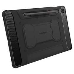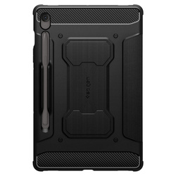 Etui Rugged Armor Pro od renomowanej firmy Spigen, to etui w pełni chroniące nasze urządzenie, bez kompromisu w kwestii użyteczności i wygody korzystania. Etui jest bardzo smukłe, jak na oferowane możliwości zabezpieczenia. Pokrowiec wykończony jest matowym wzorem z półmatowymi wstawkami i logiem Spigen. Całość prezentuje się bardzo schludnie i elegancko. Idealny produkt dla osób ceniących sobie styl, komfort i bezpieczeństwo. Spigen Rugged Armor “Pro” ma jeszcze jedną funkcjonalną zaletę - automatycznie budzi i usypia, gdy otwierasz i zamykasz przednią część. Jak sprawdzić czy dane akcesorium pasuje do Twojego Samsung Galaxy Tab? CECHY PRODUKTU: ZESTAW ZAWIERA: