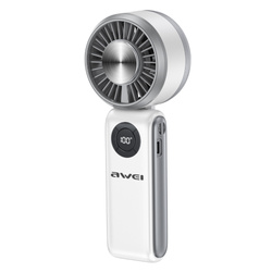 AWEI F39 Fast Ice to nowoczesny, ręczny wiatrak, który łączy w sobie funkcjonalność, kompaktowość i wydajność. Jego elegancka, biała obudowa wykonana została z trwałych materiałów ABS i PC, a w środku skrywa inteligentny chip oraz akumulator o pojemności 3600 mAh. Dzięki zastosowaniu technologii turbo, urządzenie oferuje natychmiastowe chłodzenie — niezależnie od warunków. Zasilane napięciem 5V/2A, może pracować nawet przez 10 godzin na najniższym biegu. To idealne rozwiązanie na gorące dni w podróży, biurze czy domu.