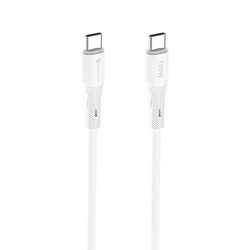 Uniwersalny kabel USB-C o wysokiej mocy 100 W, przeznaczony do błyskawicznego i bezpiecznego ładowania smartfonów, tabletów oraz laptopów. Wykonany z miękkiego, przyjemnego w dotyku i nieplączącego się silikonu, który znacząco poprawia komfort codziennego użytkowania. Wytrzymały silikonowy materiał Zastosowanie elastycznego silikonu sprawia, że kabel nie plącze się, jest odporny na uszkodzenia mechaniczne i długo zachowuje swoją pierwotną formę. Miękka struktura ułatwia zwijanie oraz przechowywanie. Błyskawiczne ładowanie urządzeń Kabel obsługuje szybkie ładowanie Power Delivery, Quick Charge™ 4.0 oraz SUPERVOOC, co zapewnia efektywne i bezpieczne zasilanie urządzeń wyposażonych w port USB-C, takich jak smartfony, tablety czy laptopy. Kompatybilny z Apple CarPlay® i Android Auto™ Kabel obsługuje systemy Apple CarPlay i Android Auto, umożliwiające korzystanie z funkcji smartfona bezpośrednio na ekranie samochodu. Po podłączeniu przez port USB możliwe jest wygodne uruchamianie nawigacji, odtwarzanie muzyki, przeglądanie kontaktów i wiadomości – bez potrzeby sięgania po telefon. Rozwiązanie zwiększa bezpieczeństwo i komfort jazdy. Specyfikacja: Model: C347 Natężenie: 5 A Moc: 100 W Długość: 100 cm Obsługa szybkiego ładowania: Power Delivery, Quick Charge™ 4.0, SUPERVOOC Szybkość transferu danych: USB 2.0 480 Mbps