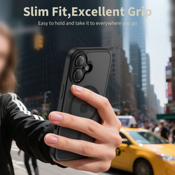 Etui Tech-Protect Magpeak Magsafe CC to stylowe i wytrzymałe akcesorium stworzone z myślą o maksymalnej ochronie i funkcjonalności. Dzięki wbudowanemu systemowi MagSafe jest w pełni kompatybilne z akcesoriami magnetycznymi, takimi jak ładowarki, uchwyty czy portfele. Precyzyjnie wykonana konstrukcja idealnie dopasowuje się do smartfona, a podniesione ranty wokół ekranu i aparatu skutecznie chronią urządzenie przed zarysowaniami i uderzeniami. Minimalistyczny design łączy się tu z praktycznymi rozwiązaniami, gwarantując wygodę użytkowania każdego dnia. Całość dopełnia elegancka ramka wokół obiektywu, która wzmacnia ochronę aparatu i nadaje całości premium wyglądu. Etui wyposażono w specjalnie zaprojektowany przycisk ochronny, który współpracuje z funkcją kontroli aparatu – jego pokrycie jest czułe na dotyk, co zapewnia doskonałą responsywność przy zachowaniu pełnej funkcjonalności. Lekka, hybrydowa konstrukcja z transparentnymi materiałami podkreśla oryginalny design smartfona, a zintegrowany moduł MagSafe sprawia, że etui jest w pełni kompatybilne z akcesoriami magnetycznymi. CECHY PRODUKTU: ZESTAW ZAWIERA: