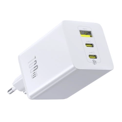 Ładowarka sieciowa Baseus EnerFill FE11 - białaBaseus EnerFill FE11 to kompaktowa i wydajna ładowarka, która łączy w sobie ogromną moc 100 W z szeroką kompatybilnością protokołów szybkiego ładowania. Dzięki trzem portom możesz zasilać jednocześnie laptop, smartfon i dodatkowe akcesoria, bez kompromisów w prędkości i bezpieczeństwie. Inteligentne systemy ochrony oraz technologia kontroli temperatury gwarantują stabilne i bezpieczne ładowanie w każdych warunkach. To praktyczne rozwiązanie zarówno do pracy, jak i w podróży. Specyfikacja: