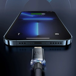 Baseus Crystal Shine Series kabel przewód USB do szybkiego ładowania i transferu danych USB Typ A - Lightning 2,4A 2m niebieski (CAJY000103) Twój obecny kabel do ładowania urządzenia i przesyłania plików nie spełnia Twoich oczekiwań? Jest słabej jakości, niebezpiecznie się wygina i plącze? Jeżeli tak, to zamień go na przewód stworzony przez markę Baseus. Zauważysz sporą różnicę. Solidne wykonanie, wysokiej jakości materiały, świetne parametry i szereg zabezpieczeń – to tylko kilka z jego zalet. Specyfikacja: