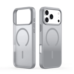 Etui Dux Ducis Yind na iPhone 17 Pro kompatybilne z MagSafe - szareDux Ducis Yind to eleganckie i trwałe etui stworzone z myślą o kompleksowej ochronie i wygodzie użytkowania iPhone 17 Pro. Łączy w sobie matowy tylny panel z poliwęglanu (PC) z miękką ramką z TPU, zapewniając pewny chwyt i odporność na zarysowania oraz odciski palców. 38 wbudowanych magnesów gwarantuje pełną kompatybilność z MagSafe, dzięki czemu akcesoria mocują się stabilnie i bez przesuwania. Cztery poduszki powietrzne w rogach skutecznie absorbują wstrząsy, chroniąc smartfon przed skutkami upadków. To etui łączy funkcjonalność, nowoczesny wygląd i solidną ochronę w szarej wersji kolorystycznej. Specyfikacja: