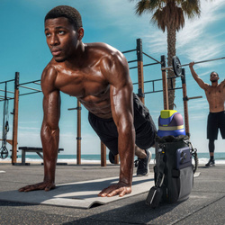 Podobne produkty Praktyczny pokrowiec na butelkę Spigen LF500, który łączy w sobie funkcjonalność magnetycznego uchwytu z pojemnym przechowywaniem. Idealny do siłowni, treningów outdoor i codziennego użytku – zawsze miej swoje niezbędniki pod ręką. Wysokiej jakości powłoka wodoodporna wewnątrz i na zewnątrz skutecznie chroni zawartość przed wilgocią i zachlapaniem. Materiał odporny na plamy i uszkodzenia mechaniczne gwarantuje długotrwałą żywotność produktu i łatwość utrzymania w czystości. Uniwersalny rozmiar pomieści butelki o pojemności 590-1180 ml, shaker proteinowy oraz różne inne pojemniki na napoje. Regulowany ściągacz zapobiega przesuwaniu się butelki i dopasowuje się do jej wielkości. Dwie boczne kieszenie chronią telefon i mieszczą przekąski lub drobne akcesoria niezbędne podczas sportu. Wygodny pasek do ręki ułatwia przenoszenie, a trzy zewnętrzne pętelki pozwalają na zamocowanie karabińczyków, breloczków czy innych gadżetów. CECHY PRODUKTU: ZESTAW ZAWIERA: