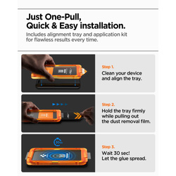 Podobne produkty OpisSzkło hartowane Spigen Glas.tR AlignMaster Slim to ochrona najwyższej klasy zaprojektowana dla Apple iPhone 17 Pro. Zestaw zawiera trzy sztuki szkieł ochronnych, które zapewniają długotrwałą ochronę ekranu bez kompromisów w zakresie przejrzystości i komfortu użytkowania. Szkło zostało wykonane z wytrzymałego High-Alumina Silicate o twardości 9H, które skutecznie chroni ekran przed zarysowaniami, uderzeniami i codziennymi uszkodzeniami. Materiał zachowuje idealną przejrzystość i naturalne odwzorowanie kolorów, dzięki czemu obraz pozostaje wyraźny i żywy. Dodatkowa powłoka oleofobowa ogranicza powstawanie smug i odcisków palców, utrzymując ekran w nienagannej czystości przez cały dzień. Montaż szkła jest prosty i precyzyjny dzięki dołączonemu innowacyjnemu zestawowi instalacyjnemu z automatycznym pozycjonowaniem AlignMaster. System eliminuje bąbelki i przesunięcia, gwarantując perfekcyjne dopasowanie za pierwszym razem. Szkło nie wpływa na funkcjonalność dotyku i zapewnia natychmiastową, responsywną reakcję ekranu, zachowując płynność i komfort korzystania z urządzenia. Cechy produktu