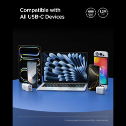Spigen Essential EB24012CC to wysokiej klasy kabel ładowania i przesyłu danych, stworzony do najbardziej wymagających urządzeń z portem USB‑C — od smartfonów i tabletów po laptopy. Kabel oferuje obsługę ładowania Power Delivery aż do 240 W, co pozwala na szybkie i stabilne ładowanie urządzeń o dużym zapotrzebowaniu na moc. Transfer danych odbywa się z prędkością do 40 Gb/s (standard USB4 / USB4 Gen3) — idealnie nadaje się do szybkiej synchronizacji, kopiowania plików i połączenia z wydajnymi urządzeniami. Dzięki wsparciu dla standardów Thunderbolt 3/4 kabel radzi sobie także z wymagającymi zadaniami — obsługuje przesył wideo w rozdzielczości 8K (single) / 4K (dual) przy użyciu DisplayPort 2.0, co czyni go świetnym wyborem do podłączania monitorów, laptopów lub stacji dokujących. Budowa kabla zapewnia wyjątkową trwałość: elastyczny materiał TPE, solidna osłona PVC oraz wtyczki z wzmocnioną konstrukcją. Kabel przeszedł testy wytrzymałości przy ponad 10 000 zgięć (technologia “Durabend”), co przekłada się na długą żywotność nawet przy intensywnym użytkowaniu. CECHY PRODUKTU: ZESTAW ZAWIERA: