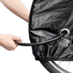 Wodoodporny pokrowiec na rower rozmiar L - czarnyPrzedstawiamy pokrowiec wodoodporny na rower – niezastąpiony towarzysz każdego cyklisty, który dba o swój rower. Wykonany z materiału odpornego na wodę, stanowi idealną ochronę przed deszczem, zapewniając rowerowi bezpieczne schronienie, nawet gdy jest przechowywany na zewnątrz. Ten pokrowiec nie tylko chroni przed ulewą, ale również przed szkodliwym działaniem warunków atmosferycznych, gwarantując długotrwałe zachowanie stanu technicznego i wizualnego Twojego roweru. Najważniejsze zalety pokrowca wodoodpornego na rower: