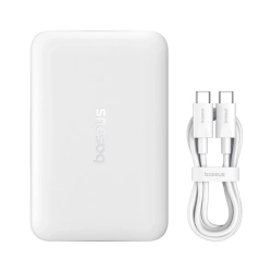 Powerbank Baseus EnerFill FM11 Ultra-Mini 10000 mAh 22,5W kompatybilny z MagSafe z kablem Baseus Simple USB-C 20V/3A 30 cm - białyBaseus EnerFill FM11 to kompaktowy powerbank o pojemności 10000 mAh, który łączy wysoką moc, bezpieczeństwo i ultraprzenośny design. Dzięki technologii MagSafe i magnesom N52 ładowanie staje się szybkie i wygodne – wystarczy jedno kliknięcie, by rozpocząć zasilanie urządzenia. Obsługuje szybkie ładowanie przewodowe do 22,5 W (PD 20 W dla iPhone, QC 22,5 W dla Android), a także bezprzewodowe do 15 W. Funkcja ładowania podczas używania zapewnia wygodę, a inteligentny system NTC kontroluje temperaturę, gwarantując stabilne i bezpieczne działanie. W zestawie znajduje się kabel Baseus Simple USB-C 20V/3A o długości 30 cm. Specyfikacja:
