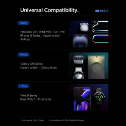 Podobne produkty OpisSpigen Essential EE673EU to wszechstronna ładowarka sieciowa z technologią GaN Pro, stworzona do jednoczesnego ładowania trzech urządzeń. Trzy porty – dwa USB-C o mocy do 67W i jeden USB-A o mocy do 22,5W – pozwalają elastycznie zasilać smartfony, tablety i akcesoria, automatycznie dostosowując parametry do potrzeb podłączonego sprzętu. Przy użyciu jednego portu USB-C zyskujesz pełne 67W mocy, a podczas kombinacji portów ładowarka inteligentnie rozdziela zasilanie, zapewniając optymalną wydajność. Zaawansowana technologia Quantum Boost analizuje potrzeby każdego urządzenia i dopasowuje natężenie oraz napięcie w czasie rzeczywistym, maksymalizując szybkość ładowania. Kompleksowe zabezpieczenia – Overcharge Prevention, Voltage Matching i Voltage Regulation – eliminują ryzyko przeładowania, skoków napięcia i niestabilnego prądu, gwarantując bezpieczne ładowanie w każdej sytuacji. Wykorzystanie technologii GaN Pro pozwala na uzyskanie wyjątkowej wydajności przy zachowaniu małej obudowy i niskiej wagi. Ulepszone odprowadzanie ciepła zapewnia niezawodną pracę nawet przy pełnym obciążeniu wszystkich portów, a kompaktowa forma sprawia, że ładowarka nie zajmuje wiele miejsca w torbie czy plecaku. Dzięki przemyślanej konstrukcji i uniwersalności Spigen EE673EU sprawdzi się wszędzie – w domu, biurze czy w podróży. To niezawodne źródło energii dla osób ceniących szybkie, inteligentne i bezpieczne ładowanie wielu urządzeń jednocześnie, bez konieczności rezygnowania z wygody i mobilności. Cechy produktu