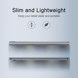 OpisTech-Protect FlexAir to minimalistyczne etui ochronne, które łączy przejrzystą estetykę z zaawansowaną ochroną. Innowacyjna hybrydowa konstrukcja gwarantuje kompleksowe zabezpieczenie Twojego tabletu. Etui wykonano z połączenia twardych, transparentnych pleców z akrylu oraz miękkiej, elastycznej ramki TPU, co zapewnia doskonałą ochronę przed uszkodzeniami mechanicznymi przy zachowaniu naturalnego wyglądu urządzenia. Wzmocnione narożniki skutecznie absorbują siłę uderzenia podczas upadków, chroniąc najbardziej narażone części tabletu. Krystalicznie przejrzyste plecy podkreślają oryginalny design Twojego tabletu, nie zakrywając jego estetyki. Precyzyjnie wycięte otwory zapewniają pełny dostęp do wszystkich portów, przycisków i aparatów bez konieczności zdejmowania etui. Cienki i lekki profil zachowuje smukłą sylwetkę tabletu, dodając minimalną objętość. Cechy produktu