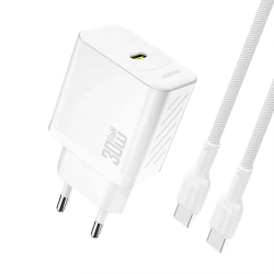 Ładowarka sieciowa Dudao A27PCEU PD 30 W GaN USB-C z kablem USB-C - białaŁadowarka sieciowa Dudao A27PCEU to kompaktowe i nowoczesne rozwiązanie do szybkiego ładowania urządzeń mobilnych. Dzięki technologii GaN oraz mocy do 30 W zapewnia wydajne i stabilne zasilanie przy niewielkich rozmiarach obudowy. Pojedynczy port USB-C z obsługą Power Delivery inteligentnie dopasowuje parametry ładowania do podłączonego sprzętu. Antypoślizgowa faktura poprawia komfort użytkowania i pewność chwytu. To praktyczny wybór do codziennego użytku oraz podróży. Specyfikacja: