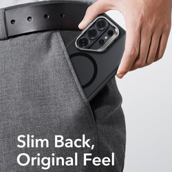 OpisESR Classic Hybrid Kickstand MagSafe to zaawansowane etui łączące ochronę z funkcjonalnością przy zachowaniu minimalistycznego, smukłego kształtu. Mocne plecki wykonane z poliwęglanu i akrylu w połączeniu z elastyczną ramką TPU zapewniają solidną ochronę, nie pogrubiając telefonu ani nie odbierając mu uroku. Wzmocnione narożniki skutecznie absorbują uderzenia, zamieniając potencjalne upadki w element codziennego użytkowania. Metalowa ramka wokół aparatu pełni podwójną funkcję – nie tylko zabezpiecza obiektywy przed zarysowaniami, ale także przekształca się w stabilną podstawkę umożliwiającą wygodne oglądanie filmów i prowadzenie wideorozmów. Wbudowany pierścień magnetyczny kompatybilny z technologią MagSafe zapewnia pewne połączenie ze wszystkimi akcesoriami MagSafe oraz maksymalną wydajność ładowania bezprzewodowego. Podniesione krawędzie wokół ekranu oraz dodatkowa, podwyższona ochrona obiektywów chronią przed zarysowaniami nawet podczas aktywnego korzystania z aparatu. Precyzyjne osłony na przyciski i dopasowane wycięcia na porty zapewniają swobodny dostęp do wszystkich funkcji telefonu. Transparentne wykończenie podkreśla oryginalny charakter Twojego telefonu, a montaż i demontaż są niezwykle szybkie. Cechy produktu