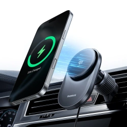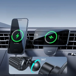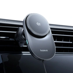 Uchwyt magnetyczny Baseus PrimeTrip VC2 Pro z ładowarką Qi2.2 z wentylatorem na kratkę nawiewu - czarnyBaseus PrimeTrip VC2 Pro to zaawansowany uchwyt magnetyczny z bezprzewodowym ładowaniem Qi2.2, zaprojektowany do bezpiecznego i wydajnego użytkowania w samochodzie. Obsługuje szybkie ładowanie bezprzewodowe o mocy do 25 W i wykorzystuje aktywne chłodzenie z wbudowanym wentylatorem, aby utrzymać stabilną wydajność podczas jazdy. Mocne magnesy zapewniają precyzyjne pozycjonowanie telefonu i pewne trzymanie na kratce nawiewu. Smukła konstrukcja oraz regulowana głowica kulowa 360° pozwalają wygodnie ustawić telefon w pionie lub poziomie. To rozwiązanie dla kierowców, którzy oczekują stabilności, chłodzenia i szybkiego ładowania w jednym urządzeniu. Specyfikacja: