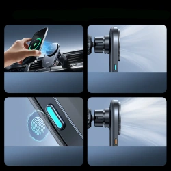 Ładowanie bezprzewodowe Qi2.2 do 25 WZapewnia szybkie i stabilne uzupełnianie energii kompatybilnych smartfonów. Wbudowany wentylator chłodzącyAktywne chłodzenie ogranicza nagrzewanie telefonu podczas intensywnego ładowania. Magnetyczne mocowanie o sile 16 NStabilne trzymanie telefonu nawet na nierównych drogach. Głowica kulowa z regulacją 360°Umożliwia szybkie dopasowanie kąta widzenia do nawigacji lub rozmów. Montaż na kratce nawiewuPewne osadzenie uchwytu bez zajmowania miejsca na desce rozdzielczej.