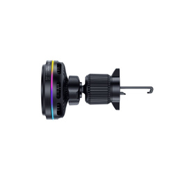 OpisUchwyt samochodowy z ładowarką bezprzewodową Tech-Protect V9 to zaawansowane rozwiązanie łączące magnetyczną technologię MagSafe z ultraszybkim ładowaniem Qi2.2 o mocy 25W. Wyposażony w aktywne chłodzenie skutecznie obniża temperaturę telefonu podczas intensywnego ładowania. Dzięki certyfikacji Qi 2.2 uchwyt zapewnia najwyższą efektywność ładowania, a silny magnes MagSafe gwarantuje pewne przytrzymanie telefonu nawet na największych nierównościach drogi. V9 można zamontować zarówno na kratce nawiewu, jak i na desce rozdzielczej czy szybie, co daje pełną swobodę w doborze optymalnej pozycji. Zaawansowana funkcja ArcticBoost to system aktywnego chłodzenia, który zapobiega przegrzewaniu się urządzenia podczas długich podróży. Dwa niezależne przyciski pozwalają na osobną kontrolę wentylatora chłodzącego oraz efektownego siedmiokolorowego podświetlenia LED z płynnym przejściem kolorów. Możesz dowolnie włączać i wyłączać chłodzenie oraz dostosować podświetlenie do nastroju, lub całkowicie je wyłączyć według własnych potrzeb. Wykonana z wysokiej jakości materiałów konstrukcja łączy wytrzymałość z eleganckim designem. Tech-Protect V9 to idealne rozwiązanie dla osób ceniących technologię, wydajność i nowoczesny styl. * Funkcja magnetyczna MagSafe działa tylko i wyłącznie bezpośrednio do telefonu lub do etui z wbudowanym oczkiem magnetycznym o zastosowaniu MagSafe. Cechy produktu
